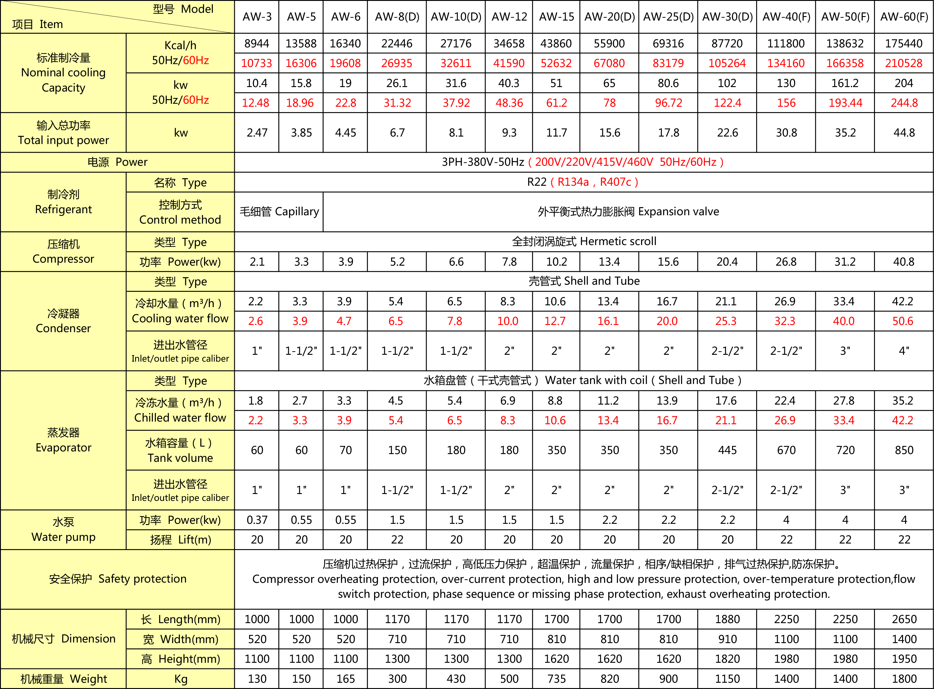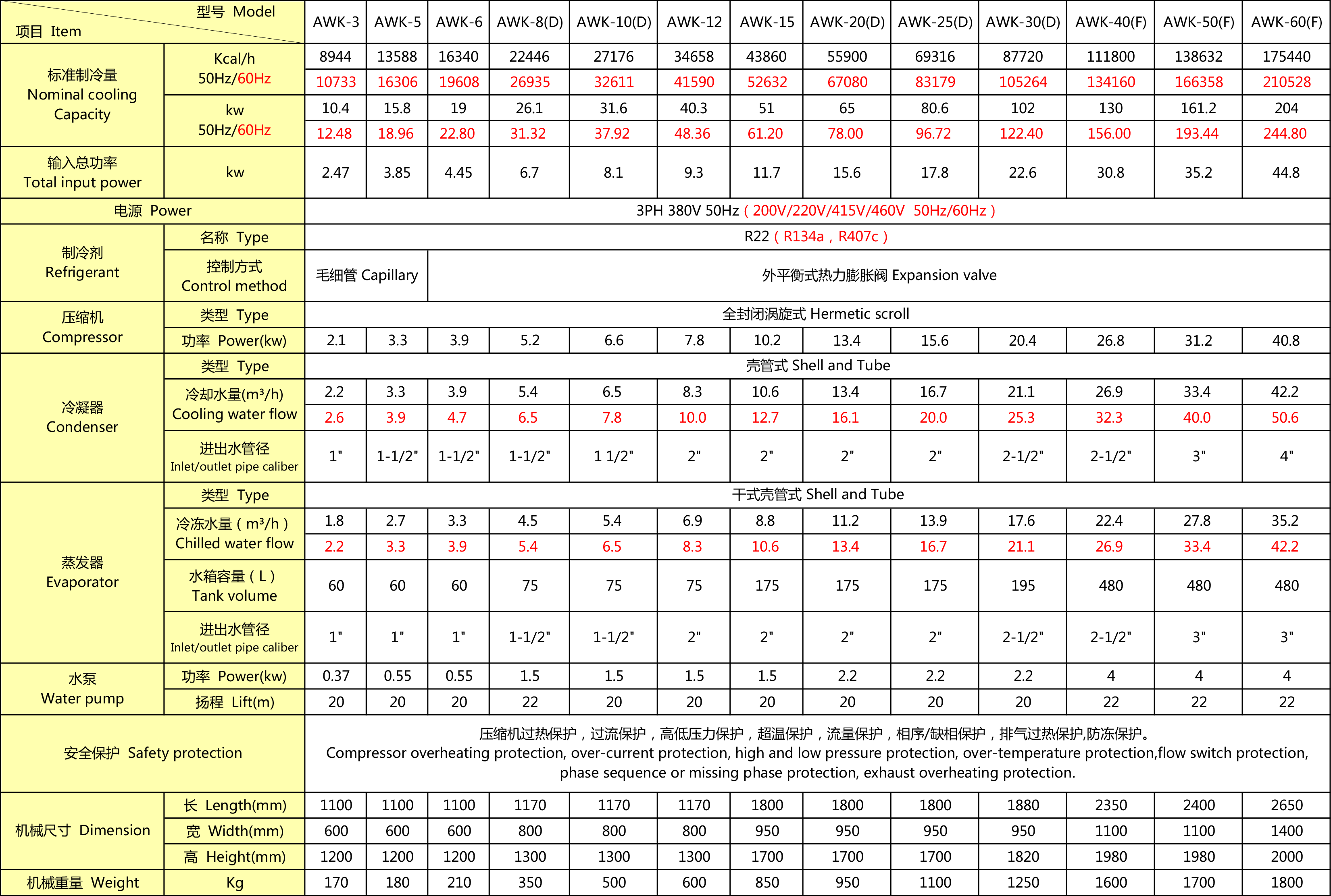 工业91视频黄片软件(水冷式)技术参数表(AWK)